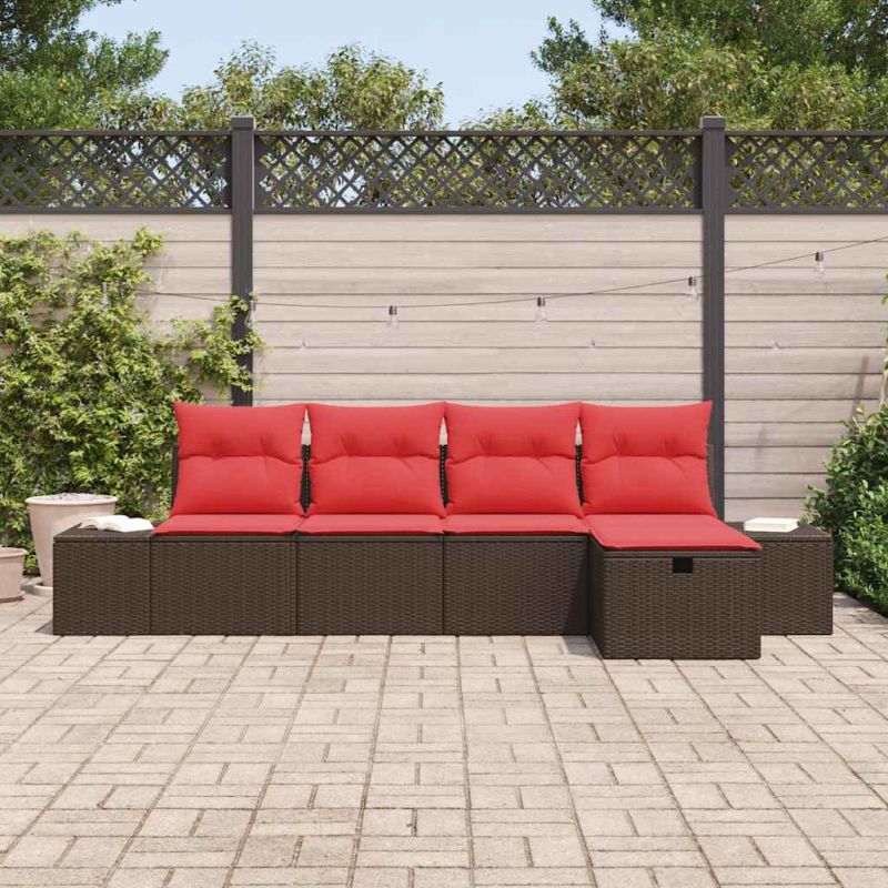 Градински Софа Комплект с възглавница 5 pcs Кафяво полиратан