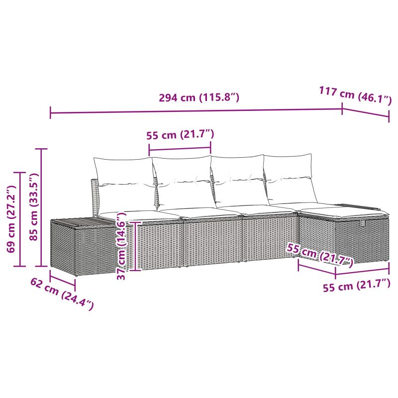 Този модерен градински комплект е точно това, което ти трябва, за да обновиш откритото си пространство. Направен от полиратан, полиестер и прахово боядисана стомана, той е перфектен за патета и тераси. Със стилните си линии предлага изискан вид, идеален за релаксация или социални моменти на открито. Полиратан и стомана: Изработен е с качествен полиратан, който има красив тъкан модел. Здравата прахово боядисана стоманена рамка му придава устойчивост на времето и държи естетиката си целогодишно. Тъмните цветове добавят стил за всяко открито пространство. Комплексни компоненти: Включва водоустойчиво съхранение за всичките ти открити принадлежности. С готови облегалки и подвижна седалка с цип, всеки елемент се вписва лесно, предоставяйки удобство и атрактивен стил за твоето открито изживяване. Функционален дизайн: Модерният дизайн на този комплект позволява да го пренастройваш, за да се адаптира към всяка конфигурация на сядане. Модулността му предлага гъвкавост и пълноценен опит на открито, независимо дали става въпрос за интимна вечеря или голямо парти. Гъвкаво ползване: Прекрасен за открито, този комплект освежава тераси и градини. Устойчивите на времето материали го правят надеждно и удобно място за сядане за всякакви събирания, наслаждавайки се на природата. Лесна поддръжка: Поддържането му е лесно - просто избърсвай повърхностите с влажна кърпа, за да премахнеш прах и мръсотия. С тази проста грижа той остава красив, така че можеш да се наслаждаваш на времето си навън без много усилия.