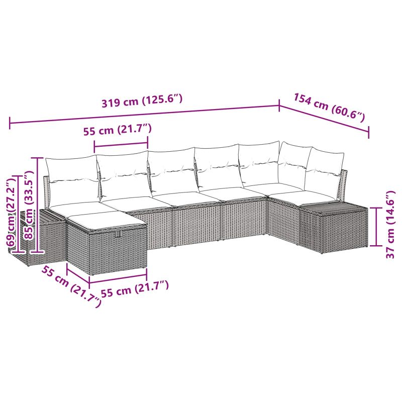 Градински Софа Комплект с възглавница 7 pcs Кафяво полиратан