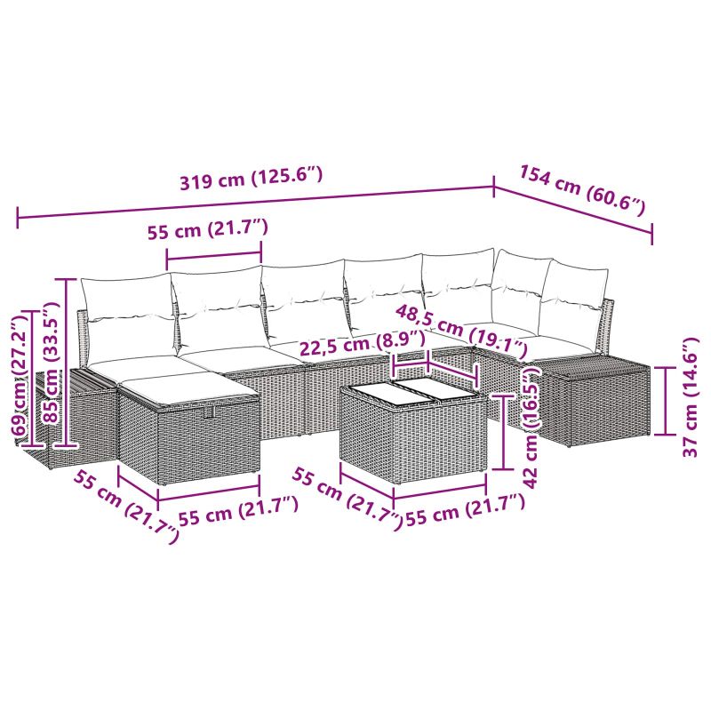 Градински Софа Комплект с възглавница 8 pcs Кафяво полиратан