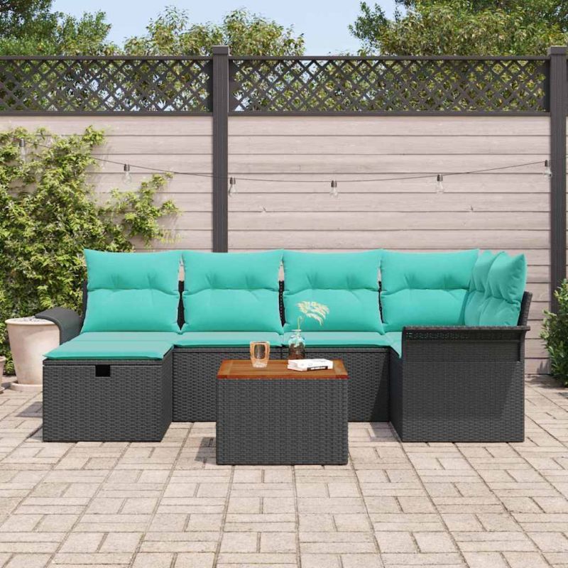 Градински Софа Комплект с възглавница 7 pcs Черно полиратан