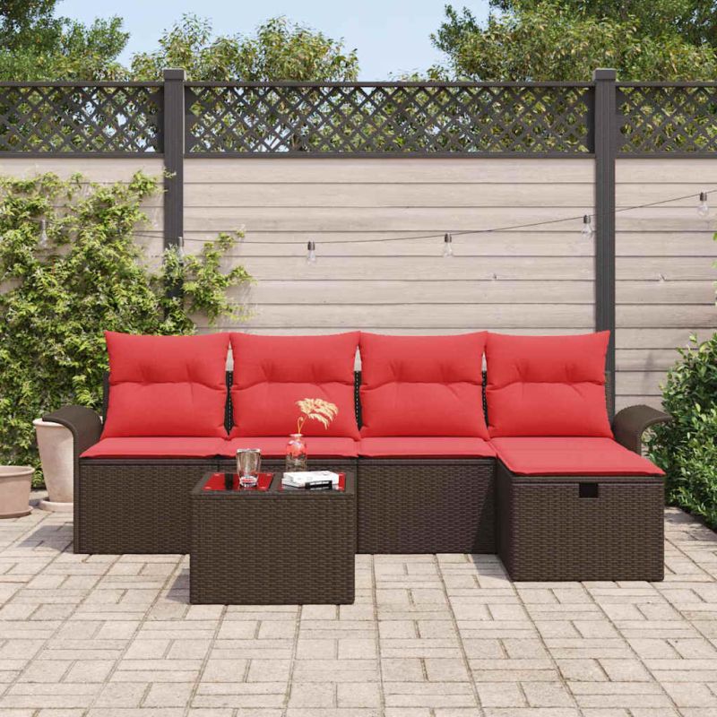 Градински Софа Комплект с възглавница 6 pcs Полиратан