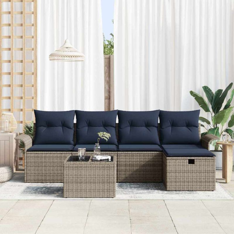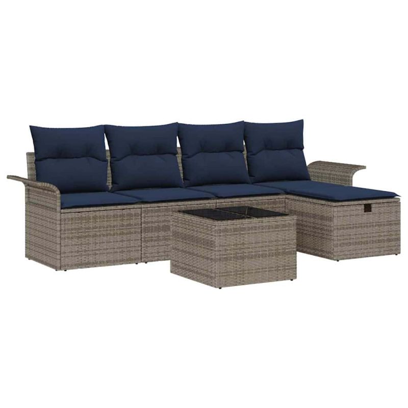 Градински Софа Комплект с възглавница 6 pcs Полиратан