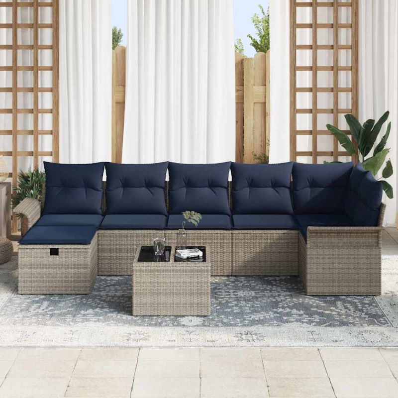 Градински Софа Комплект с възглавница 8 pcs Сив Полиратан