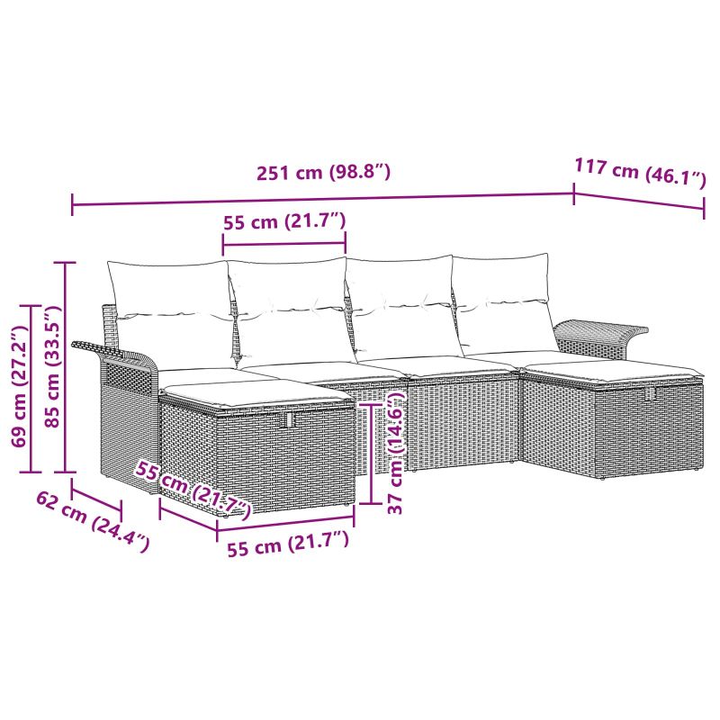 Градински Софа Комплект с възглавница 6 pcs Сив Полиратан