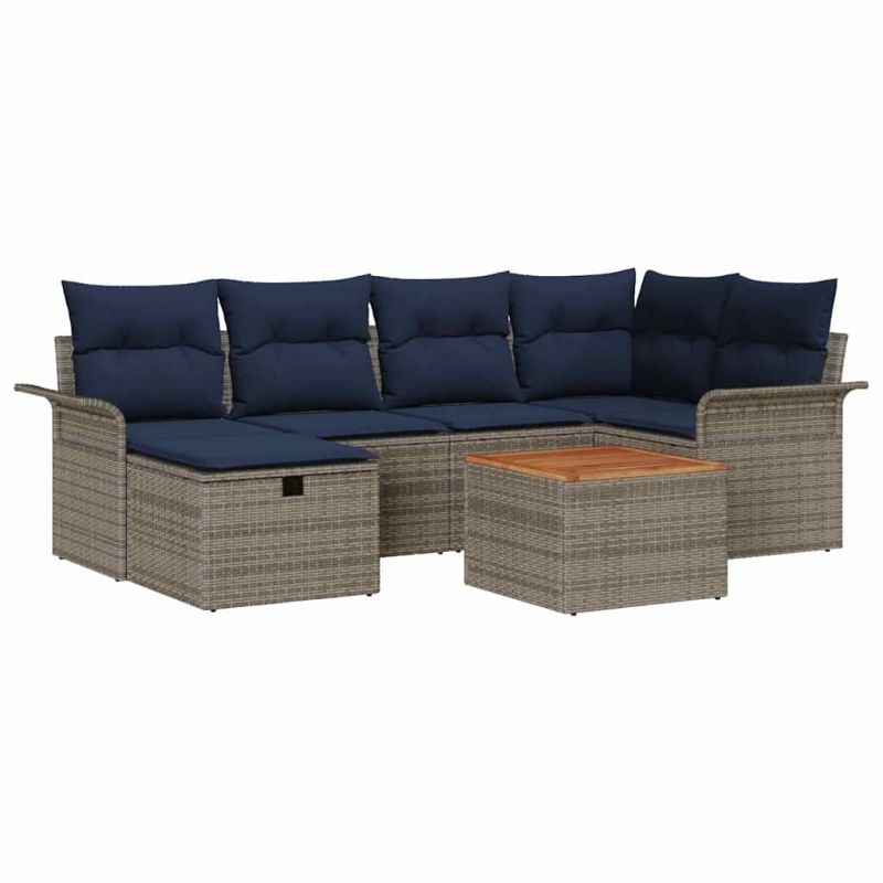 Градински Софа Комплект с възглавница 7 pcs Сив Полиратан