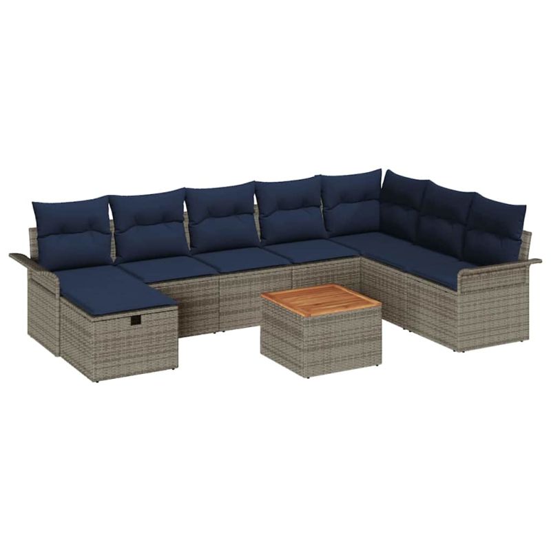 Градински Софа Комплект с възглавница 9 pcs Сив Полиратан