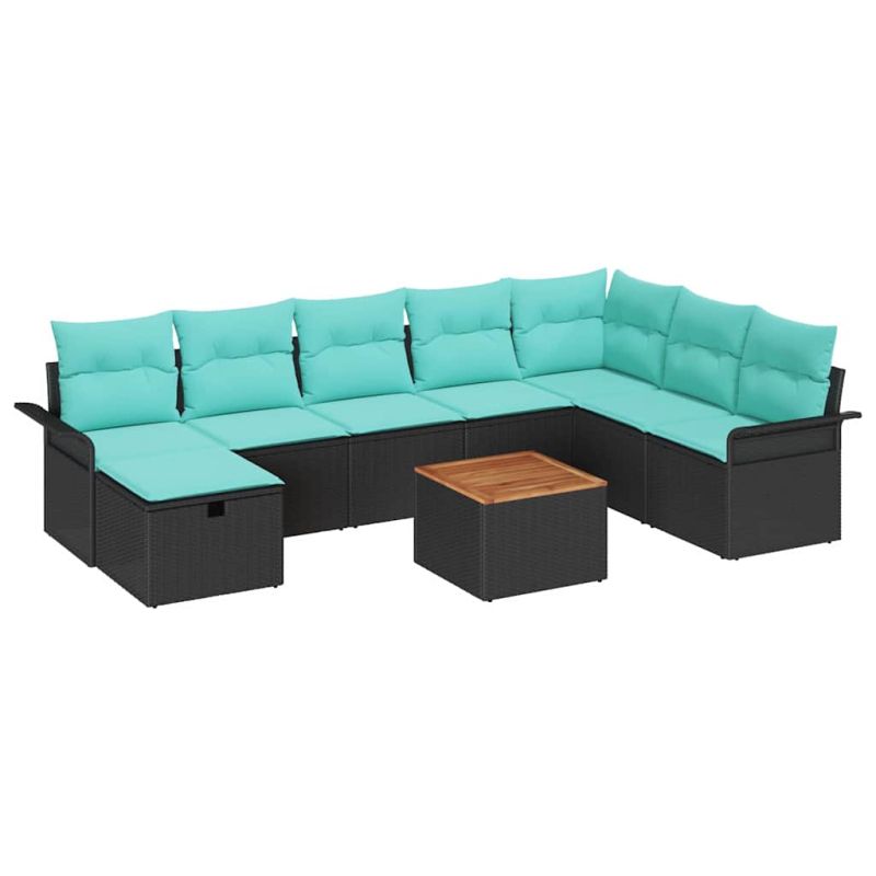 Градински Софа Комплект с възглавница 9 pcs Черно Полиратан