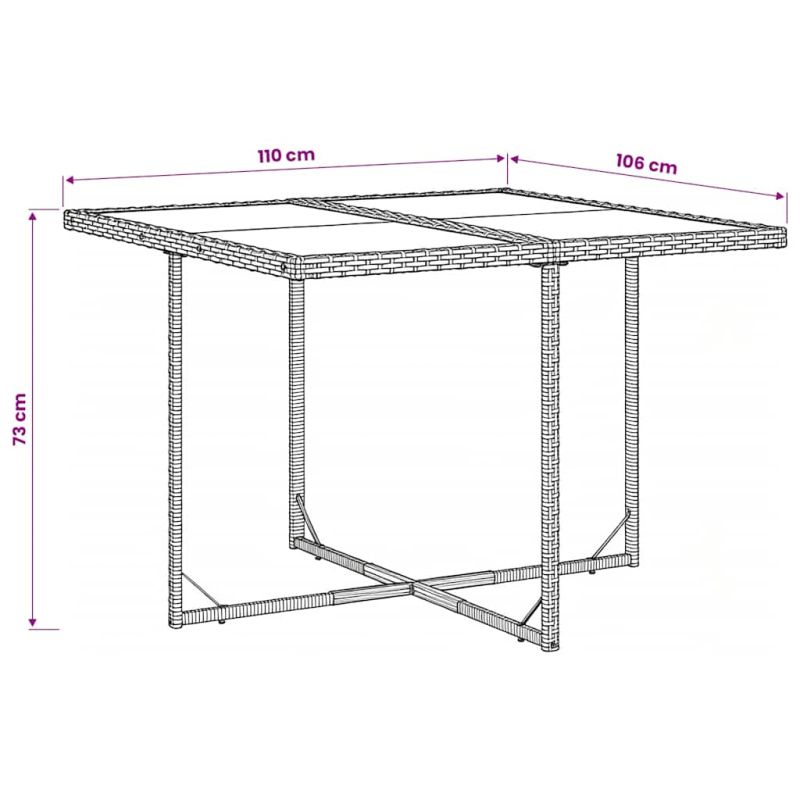 Този градински трапезен комплект е чудесен избор за вечеря на открито или просто за почивка в градината, задния двор или във вътрешния двор. Издръжлив материал: PE ратан, известен също като полиратан, е здрав синтетичен материал с малко необходима поддръжка, който прилича на естествен ратан. Той е лек, лесен за почистване и често се използва за външни мебели поради своята издръжливост и устойчивост на атмосферни влияния.Компактно съхранение: Тези столове имат падаща облегалка, която може да се сгъва, което улеснява съхранението им под масата. Когато са сгънати, те се побират под масата, оформяйки спестяваща място форма на куб.Удобна седалка: Тази мебел за открито, снабдена с плътно подплатени възглавници, предлага удобство при сядане.Калъф, който може да се сваля и може да се пере: Тези възглавници за седалки имат подвижни калъфи за лесно пране и поддръжка. Калъфките за възглавници имат калъф отзад за лесно закрепване към облегалките.Стъклен плот: Плотът на външната маса е изработен от здраво и издръжливо закалено стъкло, което улеснява почистването с влажна кърпа и добавя нотка елегантност към вашето външно пространство. Добре е да се знае:За да сте сигурни, че вашите външни мебели ще останат красиви, ви препоръчваме да ги защитите с водоустойчиво покривало. Максимално 110 кг на седалка.