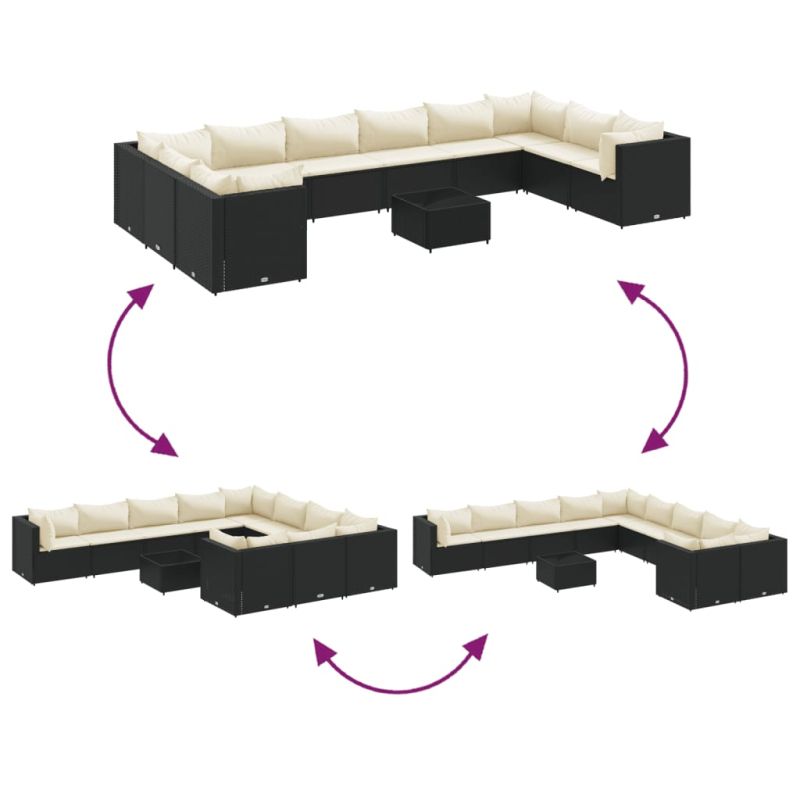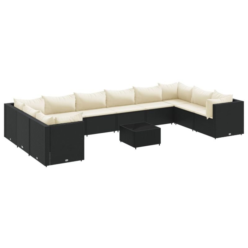 Градински лаундж комплект с възглавници 11части черен полиратан