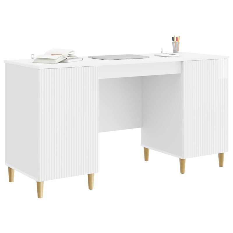 Бюро с рафт Бял гланц 142,5 x 50 x 75 см Инженерна дървесина