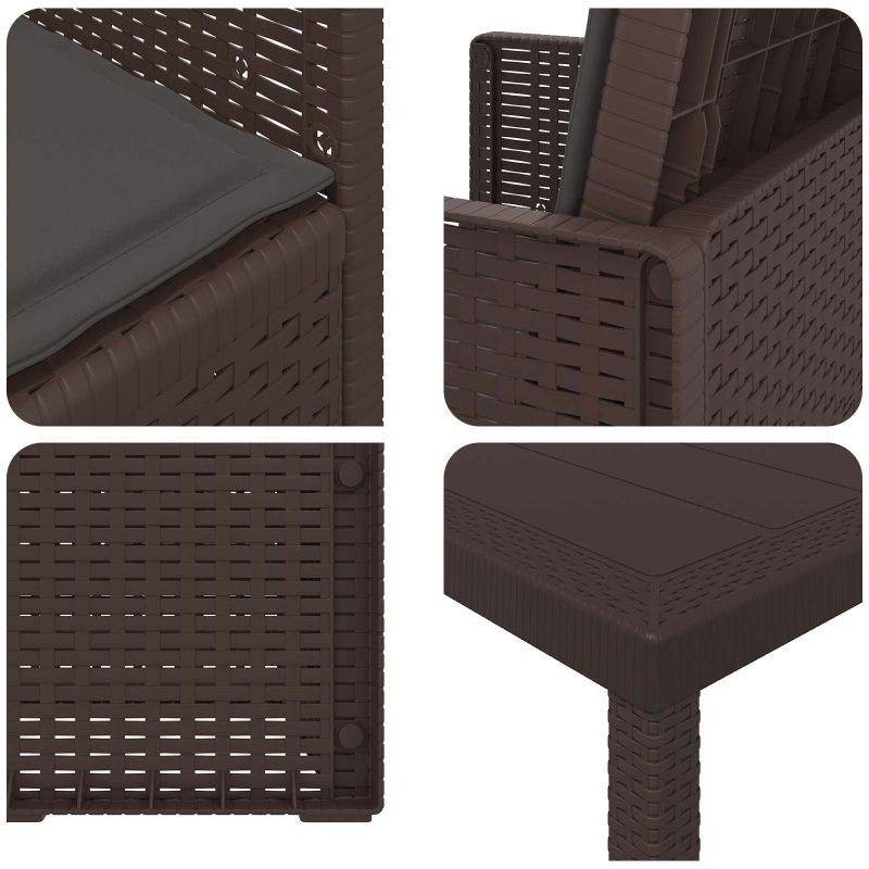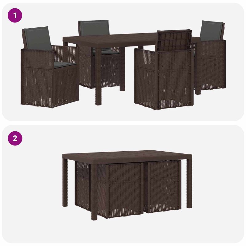 Този комплект за хранене на открито комбинира практичен дизайн с удобно използване за балкони и градини. Направен от дълготрайни материали, той е идеален за ежедневно ползване. С простота във визията си, той лесно се вписва в различни външни среди. Проектиран с удобство на преден план, предложеното място осигурява перфектно решение за сядане и хранене. Здраво изграждане: Масата и столовете са от полипропилен и пластмаса, осигурявайки устойчива основа за всяка употреба на открито. Със свойства на устойчивост на климатични условия и UV, комплектът е направен да издържа на обичайното време, поддържайки висока производителност. Удобни столове: Напълнени с пяна, седалките и подложките предлагат лека и стабилна опора за всекидневно сядане. Пяната осигурява комфорт, намалявайки твърдото усещане на повърхностите. Дизайн с пречупване: Механизмът позволява облегалката на столовете лесно да се сгъва, което ги прави удобни за съхранение под по-високите маси. Този практичен подход спомага за икономия на място и поддържа организираност в пространствата за хранене. Универсално използване: Идеален за различни външни условия, този комплект е перфектен за всякакви поводи. Подходящ е за балкони, градини или дворове, осигурявайки комфортно място за неформално хранене, отпиване или събиране на хора. Лесно сглобяване и поддръжка: Комплектът се сглобява лесно с основни инструменти. Също така, поддръжката му е проста – просто избърсвайте с влажна кърпа, за да го запазите в добро състояние при редовна употреба на открито.