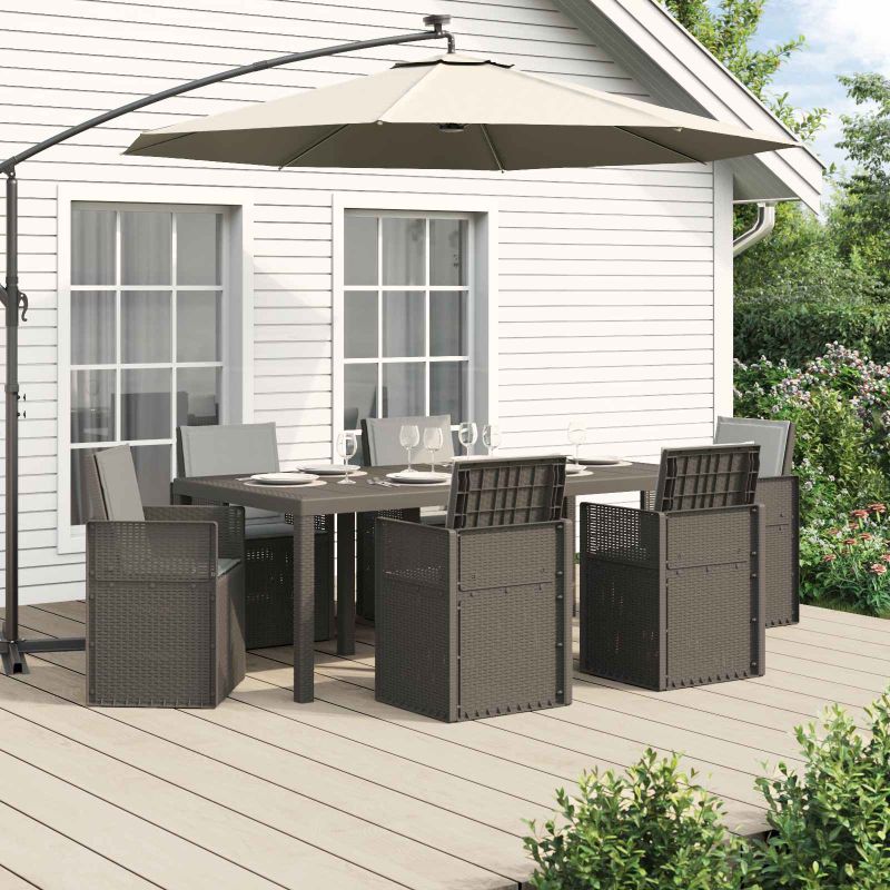 Този комплект за хранене на открито комбинира практичен дизайн с удобно използване за балкони и градини. Направен от дълготрайни материали, той е идеален за ежедневно ползване. С простота във визията си, той лесно се вписва в различни външни среди. Проектиран с удобство на преден план, предложеното място осигурява перфектно решение за сядане и хранене. Здраво изграждане: Масата и столовете са от полипропилен и пластмаса, осигурявайки устойчива основа за всяка употреба на открито. Със свойства на устойчивост на климатични условия и UV, комплектът е направен да издържа на обичайното време, поддържайки висока производителност. Удобни столове: Напълнени с пяна, седалките и подложките предлагат лека и стабилна опора за всекидневно сядане. Пяната осигурява комфорт, намалявайки твърдото усещане на повърхностите. Дизайн с пречупване: Механизмът позволява облегалката на столовете лесно да се сгъва, което ги прави удобни за съхранение под по-високите маси. Този практичен подход спомага за икономия на място и поддържа организираност в пространствата за хранене. Универсално използване: Идеален за различни външни условия, този комплект е перфектен за всякакви поводи. Подходящ е за балкони, градини или дворове, осигурявайки комфортно място за неформално хранене, отпиване или събиране на хора. Лесно сглобяване и поддръжка: Комплектът се сглобява лесно с основни инструменти. Също така, поддръжката му е проста – просто избърсвайте с влажна кърпа, за да го запазите в добро състояние при редовна употреба на открито.