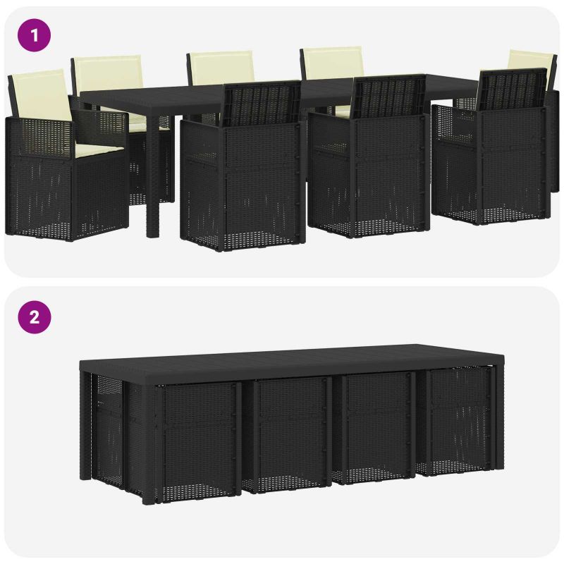 Този комплект за хранене на открито комбинира практичен дизайн с удобно използване за балкони и градини. Направен от дълготрайни материали, той е идеален за ежедневно ползване. С простота във визията си, той лесно се вписва в различни външни среди. Проектиран с удобство на преден план, предложеното място осигурява перфектно решение за сядане и хранене. Здраво изграждане: Масата и столовете са от полипропилен и пластмаса, осигурявайки устойчива основа за всяка употреба на открито. Със свойства на устойчивост на климатични условия и UV, комплектът е направен да издържа на обичайното време, поддържайки висока производителност. Удобни столове: Напълнени с пяна, седалките и подложките предлагат лека и стабилна опора за всекидневно сядане. Пяната осигурява комфорт, намалявайки твърдото усещане на повърхностите. Дизайн с пречупване: Механизмът позволява облегалката на столовете лесно да се сгъва, което ги прави удобни за съхранение под по-високите маси. Този практичен подход спомага за икономия на място и поддържа организираност в пространствата за хранене. Универсално използване: Идеален за различни външни условия, този комплект е перфектен за всякакви поводи. Подходящ е за балкони, градини или дворове, осигурявайки комфортно място за неформално хранене, отпиване или събиране на хора. Лесно сглобяване и поддръжка: Комплектът се сглобява лесно с основни инструменти. Също така, поддръжката му е проста – просто избърсвайте с влажна кърпа, за да го запазите в добро състояние при редовна употреба на открито.