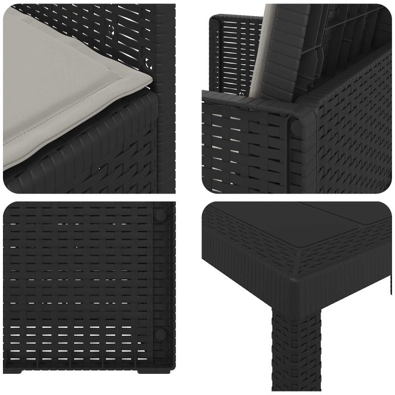 Този комплект за хранене на открито комбинира практичен дизайн с удобно използване за балкони и градини. Направен от дълготрайни материали, той е идеален за ежедневно ползване. С простота във визията си, той лесно се вписва в различни външни среди. Проектиран с удобство на преден план, предложеното място осигурява перфектно решение за сядане и хранене. Здраво изграждане: Масата и столовете са от полипропилен и пластмаса, осигурявайки устойчива основа за всяка употреба на открито. Със свойства на устойчивост на климатични условия и UV, комплектът е направен да издържа на обичайното време, поддържайки висока производителност. Удобни столове: Напълнени с пяна, седалките и подложките предлагат лека и стабилна опора за всекидневно сядане. Пяната осигурява комфорт, намалявайки твърдото усещане на повърхностите. Дизайн с пречупване: Механизмът позволява облегалката на столовете лесно да се сгъва, което ги прави удобни за съхранение под по-високите маси. Този практичен подход спомага за икономия на място и поддържа организираност в пространствата за хранене. Универсално използване: Идеален за различни външни условия, този комплект е перфектен за всякакви поводи. Подходящ е за балкони, градини или дворове, осигурявайки комфортно място за неформално хранене, отпиване или събиране на хора. Лесно сглобяване и поддръжка: Комплектът се сглобява лесно с основни инструменти. Също така, поддръжката му е проста – просто избърсвайте с влажна кърпа, за да го запазите в добро състояние при редовна употреба на открито.