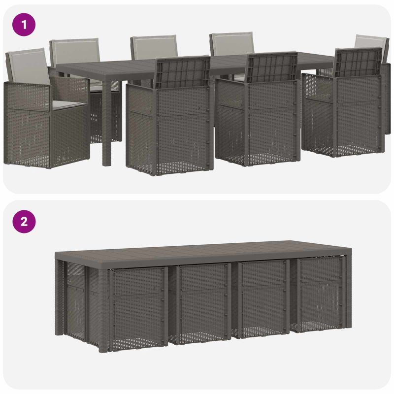 Този комплект за хранене на открито комбинира практичен дизайн с удобно използване за балкони и градини. Направен от дълготрайни материали, той е идеален за ежедневно ползване. С простота във визията си, той лесно се вписва в различни външни среди. Проектиран с удобство на преден план, предложеното място осигурява перфектно решение за сядане и хранене. Здраво изграждане: Масата и столовете са от полипропилен и пластмаса, осигурявайки устойчива основа за всяка употреба на открито. Със свойства на устойчивост на климатични условия и UV, комплектът е направен да издържа на обичайното време, поддържайки висока производителност. Удобни столове: Напълнени с пяна, седалките и подложките предлагат лека и стабилна опора за всекидневно сядане. Пяната осигурява комфорт, намалявайки твърдото усещане на повърхностите. Дизайн с пречупване: Механизмът позволява облегалката на столовете лесно да се сгъва, което ги прави удобни за съхранение под по-високите маси. Този практичен подход спомага за икономия на място и поддържа организираност в пространствата за хранене. Универсално използване: Идеален за различни външни условия, този комплект е перфектен за всякакви поводи. Подходящ е за балкони, градини или дворове, осигурявайки комфортно място за неформално хранене, отпиване или събиране на хора. Лесно сглобяване и поддръжка: Комплектът се сглобява лесно с основни инструменти. Също така, поддръжката му е проста – просто избърсвайте с влажна кърпа, за да го запазите в добро състояние при редовна употреба на открито.