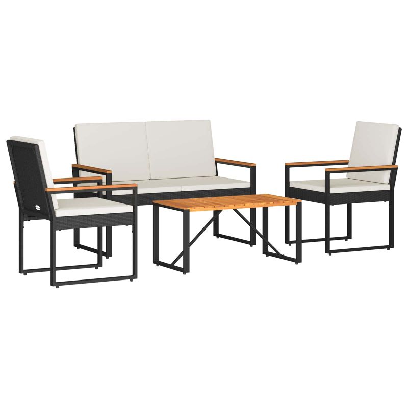 Комплект за външни мебели 4 pcs Черно и кремаво бяло полиратан