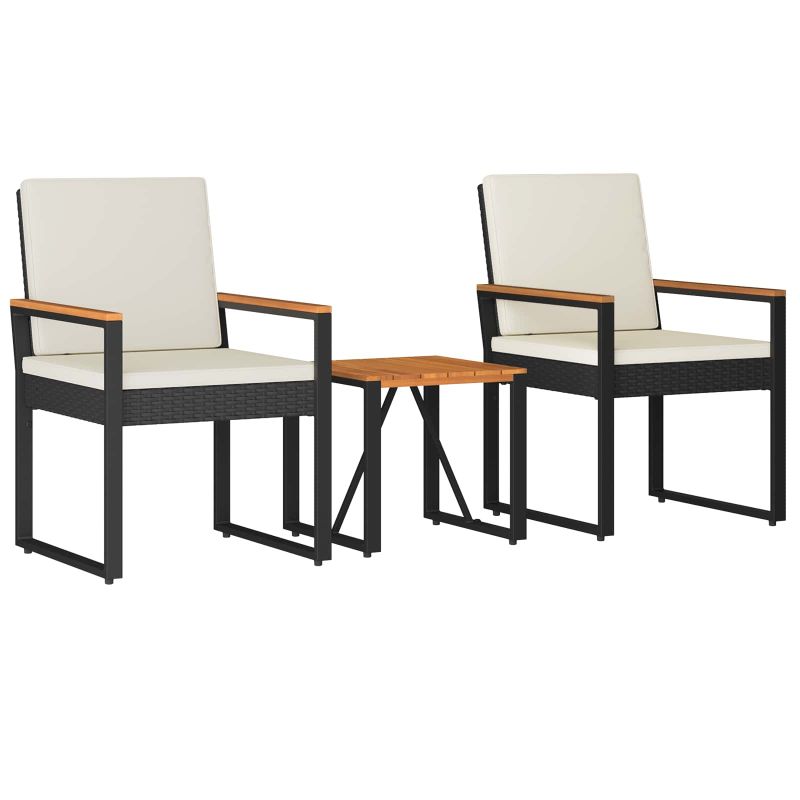 Комплект за външни мебели 3 pcs Черно и кремаво бяло полиратан