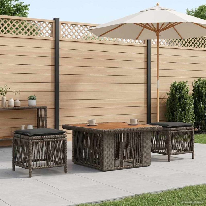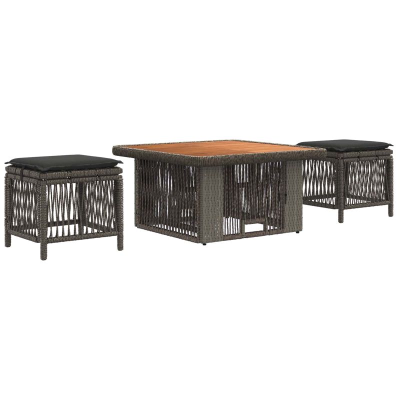 Комплект за хранене в градината 3 pcs Сив и тъмен сив полиратан