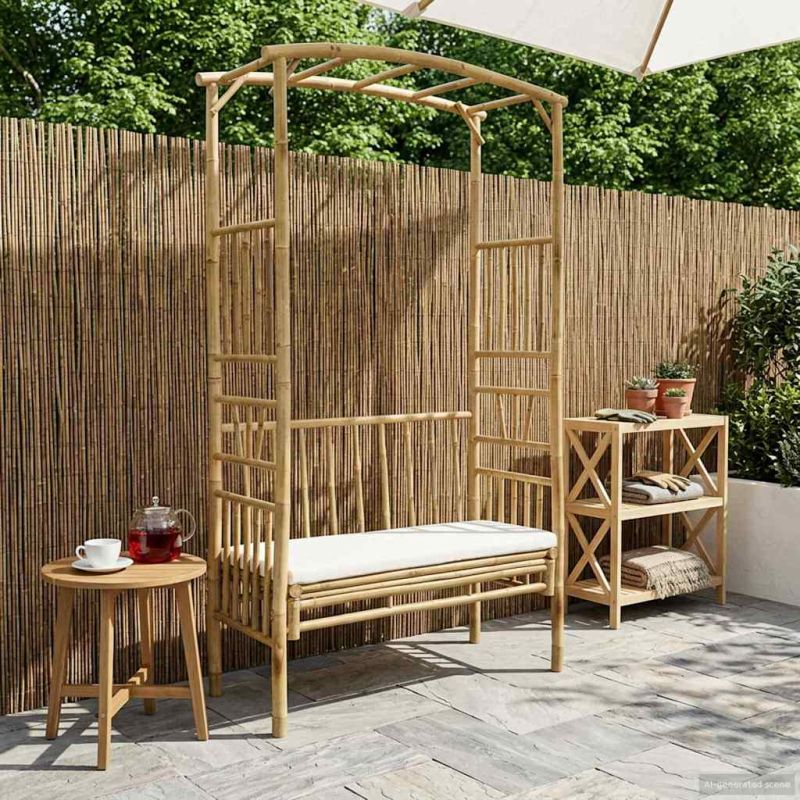 Градинска арка с пейка Естествен 115 x 50 x 205 см Бамбук