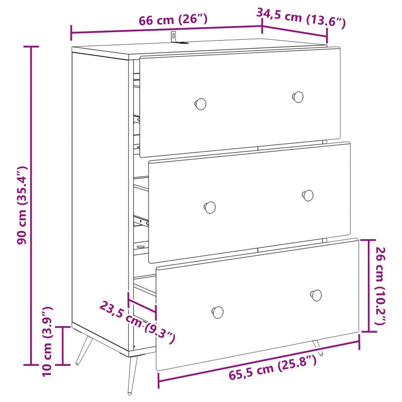 Чекмеджетен шкаф Черно 66 x 34,5 x 90 см Инженерна дървесина
