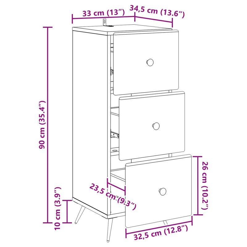 Чекмеджетен шкаф Старо дърво 33 x 34,5 x 90 см