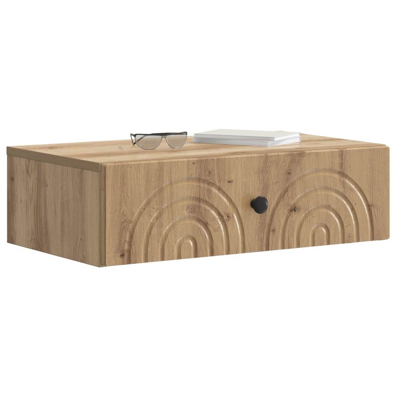 Тази модерна стенна маса е чудесна комбинация от функция и стил. Създадена да се вписва в различни интериори, лесно се интегрира в съвременните домове, предлагайки основно съхранение за вашите вещи. Перфектна е за освободено пространство и добавя елегантност където и да е, докато остава практична. С опростен силует и икономична конструкция, тя е идеално допълнение за компактни жилищни площи. Материали: Направена от инженерна дървесина, стенната маса е дълготрайна и с привлекателен вид, идеална за дългосрочна употреба. Инженерната дървесина придава модерен стил и здравина. Включени компоненти: Масата има чекмеджета, подходящи за малки уреди, с метални дръжки за удобен достъп. Тези елементи повишават удобството и предоставят стилно съхранение. Характеристики / Функция / Дизайн: Тази маса е многофункционална - може да бъде нощно шкафче, допълнение към масата за кафе или място за декорация. С стенния си монтаж спестява място на пода, подходяща за съвременния начин на живот. Препоръчани употреби: Перфектна за всякакви помещения, тази маса е чудесно решение за максимизиране на пространството без компромиси в стила, позволявайки ви да организирате пространството си с лекота. Поддръжка и грижи: Лесно е да се грижи за тази маса; просто я избърсвайте с влажна кърпа, за да я поддържате в отлично състояние.