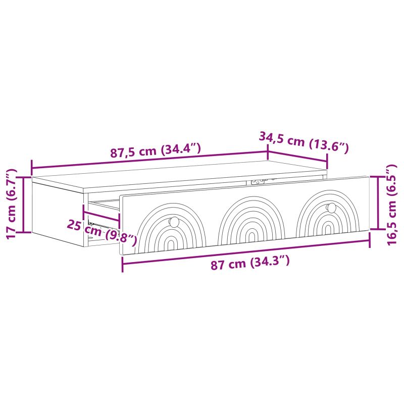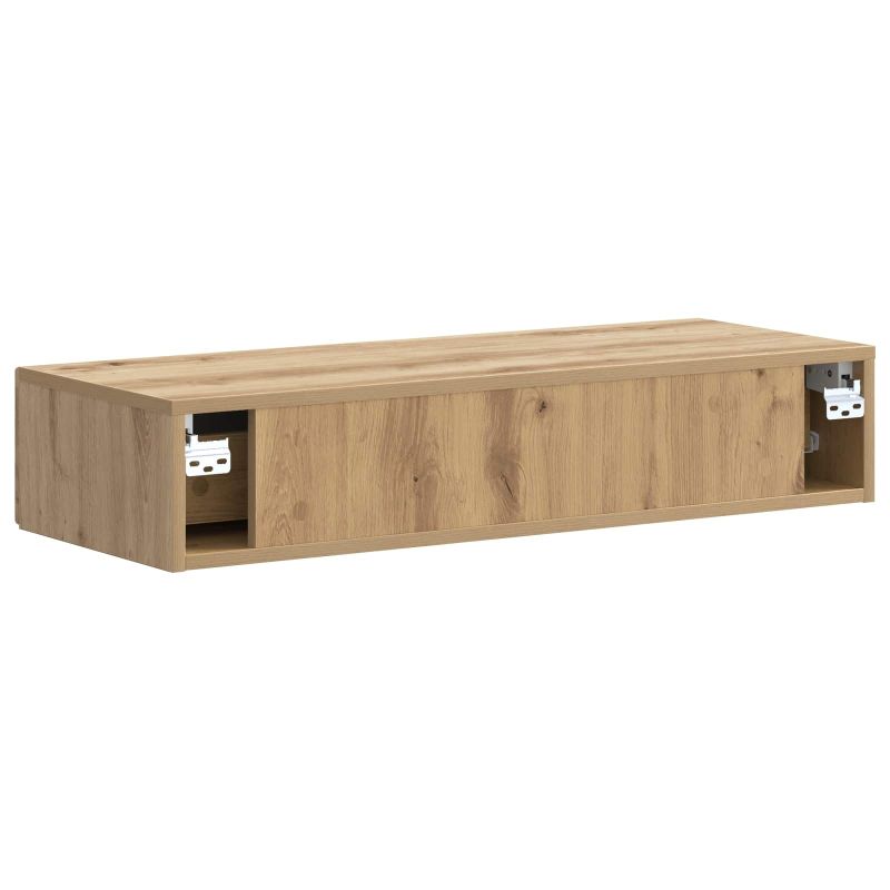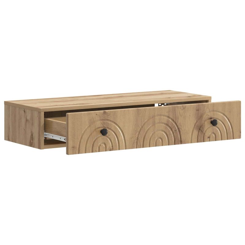 Тази модерна стенна маса е чудесна комбинация от функция и стил. Създадена да се вписва в различни интериори, лесно се интегрира в съвременните домове, предлагайки основно съхранение за вашите вещи. Перфектна е за освободено пространство и добавя елегантност където и да е, докато остава практична. С опростен силует и икономична конструкция, тя е идеално допълнение за компактни жилищни площи. Материали: Направена от инженерна дървесина, стенната маса е дълготрайна и с привлекателен вид, идеална за дългосрочна употреба. Инженерната дървесина придава модерен стил и здравина. Включени компоненти: Масата има чекмеджета, подходящи за малки уреди, с метални дръжки за удобен достъп. Тези елементи повишават удобството и предоставят стилно съхранение. Характеристики / Функция / Дизайн: Тази маса е многофункционална - може да бъде нощно шкафче, допълнение към масата за кафе или място за декорация. С стенния си монтаж спестява място на пода, подходяща за съвременния начин на живот. Препоръчани употреби: Перфектна за всякакви помещения, тази маса е чудесно решение за максимизиране на пространството без компромиси в стила, позволявайки ви да организирате пространството си с лекота. Поддръжка и грижи: Лесно е да се грижи за тази маса; просто я избърсвайте с влажна кърпа, за да я поддържате в отлично състояние.