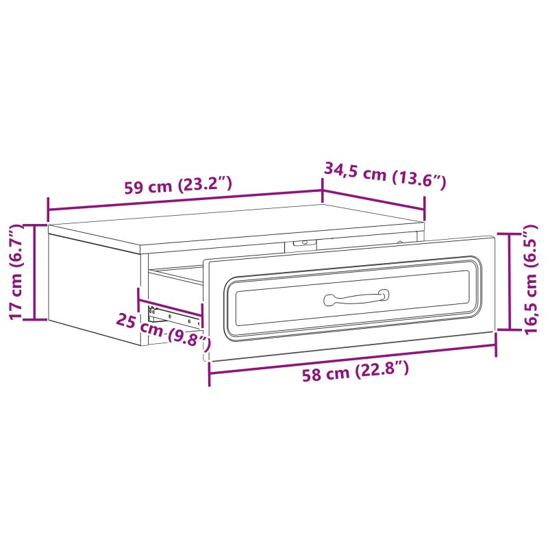 Стенен страничен масичка Бял гланц 59 x 34,5 x 17 см