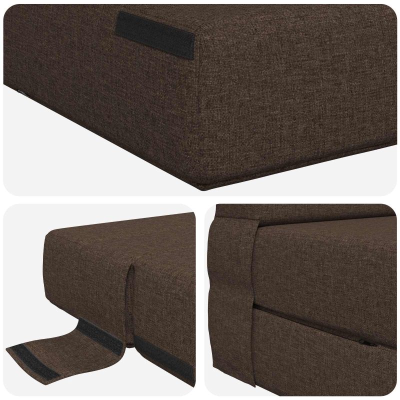 Модерният сгъваем диван-легло е супер практично мебели, проектирано за съвременни вътрешни пространства като спални и всекидневни. С елегантен правоъгълен стил, лесно преминава от компактен диван до легло с пълна дължина – идеалното решение за дневна и нощна употреба. Визията му е съвременна и минималистична, допринасяща за стилния интериор. Двойната му функция е перфектна за малки апартаменти и гъвкави жилищни пространства, тъй като е любим избор за търсещите многофункционалност. Висококачествени материали: Този диван-легло е направен от дишаща тъкан, която е нежна на допир, осигурявайки комфорт, независимо дали седите или лежите. Пяната добавя допълнителен слой на омекотяване, предлагаща изключителен комфорт и подкрепа. Материалите са избрани за дълготрайност, идеален за често използвани пространства. Преобразуваем дизайн: Лесно се трансформира от красив диван в удобно легло. Страхотен за компактни жилищни пространства, подвижният дизайн отговаря на различни нужди, преминавайки без усилие от места за сядане до легло за гости. Интуитивният процес на сгъване осигурява бърза настройка без механична помощ. Функции за спестяване на пространство: Сгъваемият дизайн е идеален за запазване на пространство в малки жилища. Когато не се използва като легло, сгъването му обратно в диван максимизира полезността на стаята. Тази характеристика го прави особено полезен за малки апартаменти или многофункционални стаи, като домашни офиси или стаи за гости. Сигурна и стабилна настройка: Диван-леглото разполага с велкро закопчалки, които осигуряват стабилност, независимо от конфигурацията – дали е диван или легло. Тези затваряния предоставят сигурност и лесно използване, минимизирайки притесненията за подравняване по време на употреба и осигуряващи спокойствие на потребителя. Поддръжка и грижа: Поддръжката е проста с функции, които правят почистването лесно. Материалите са обработени да устоят на замърсяване и износване, което прави този диван-легло забележително лесен за поддържане. Редовно почистване с прахосмукачка и малко почистване на място са обикновено достатъчни, благодарение на внимателно обмислените дизайнерски решения.