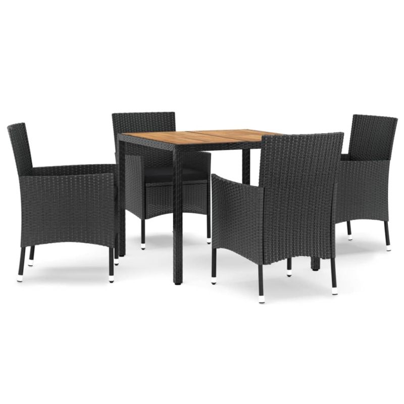 Градински трапезен комплект възглавници 5 части черен полиратан