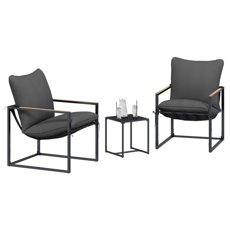 Градински Софа Комплект 3 pcs Черно и антрацит Стомана