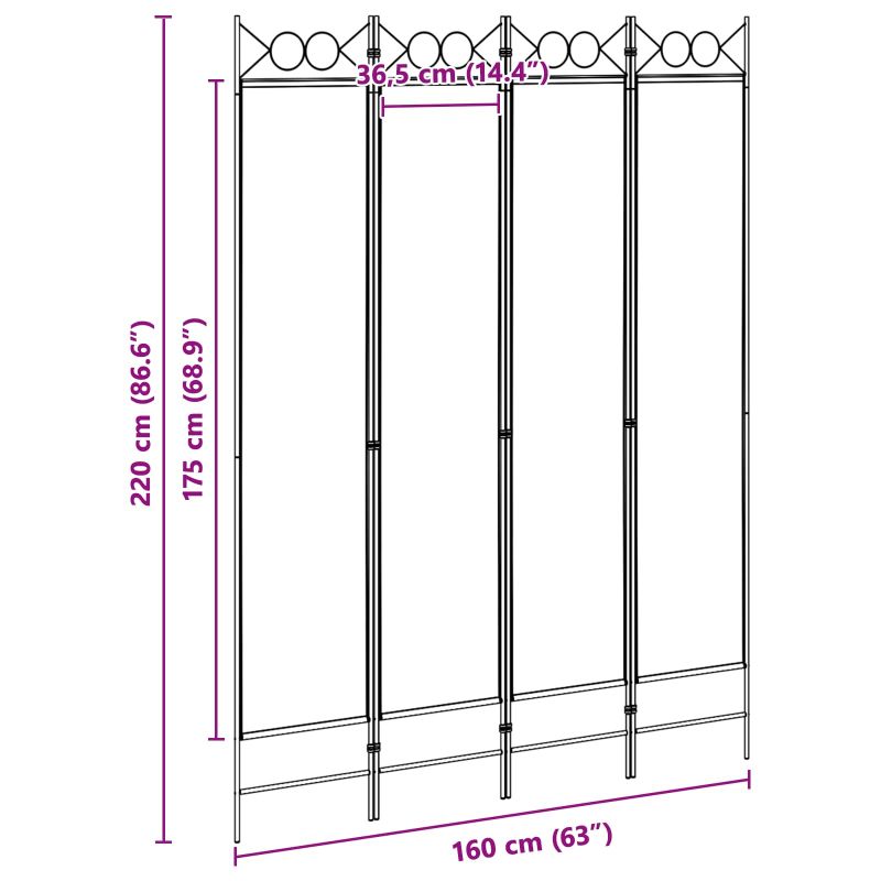 4-панелна преграда Бежово 160 x 220 cm Текстил