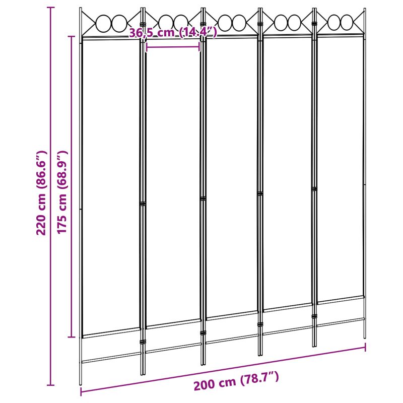 5-панелна преграда Бежово 200 x 220 cm Текстил