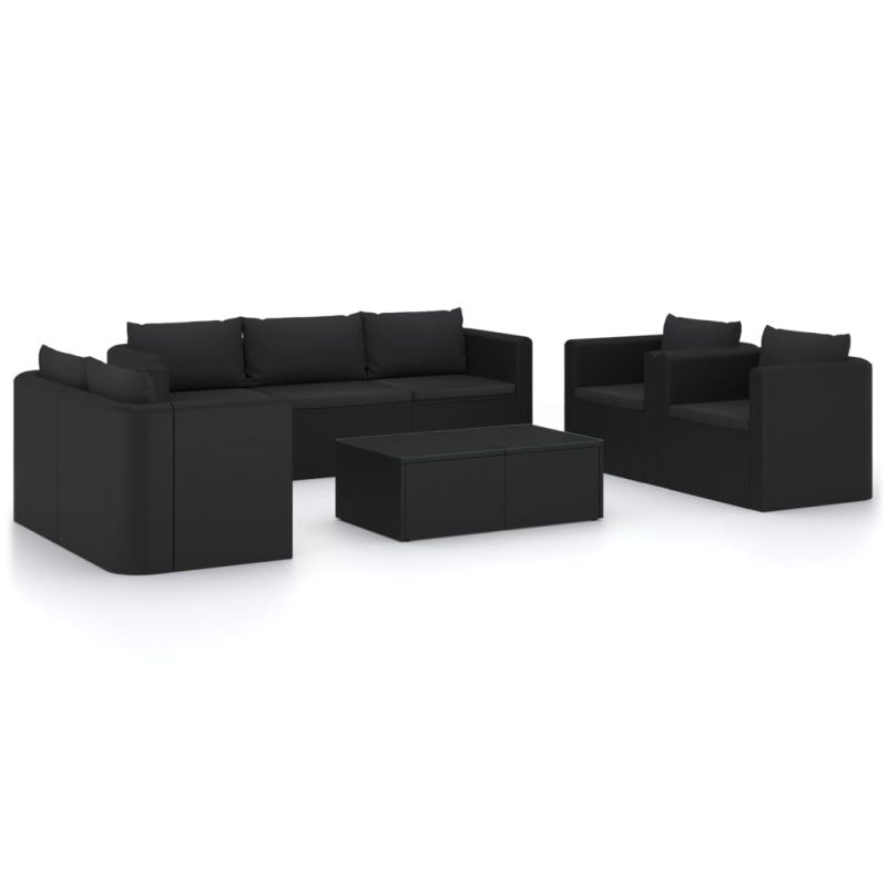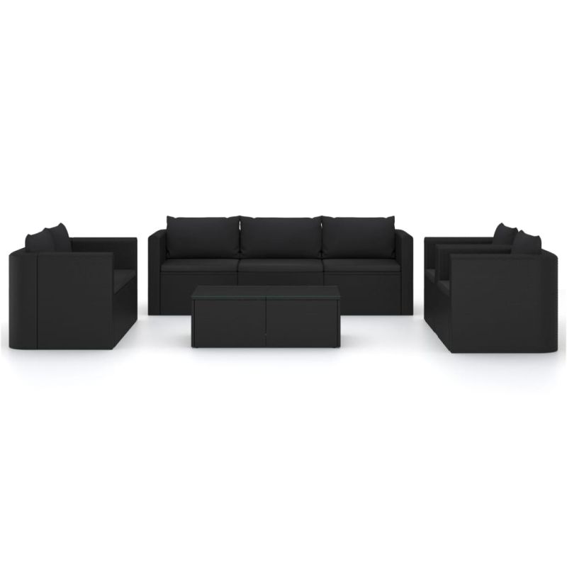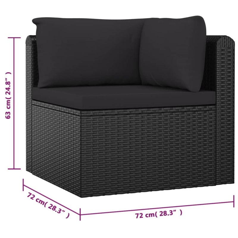 Градински комплект с възглавници, 9 части, полиратан, черен