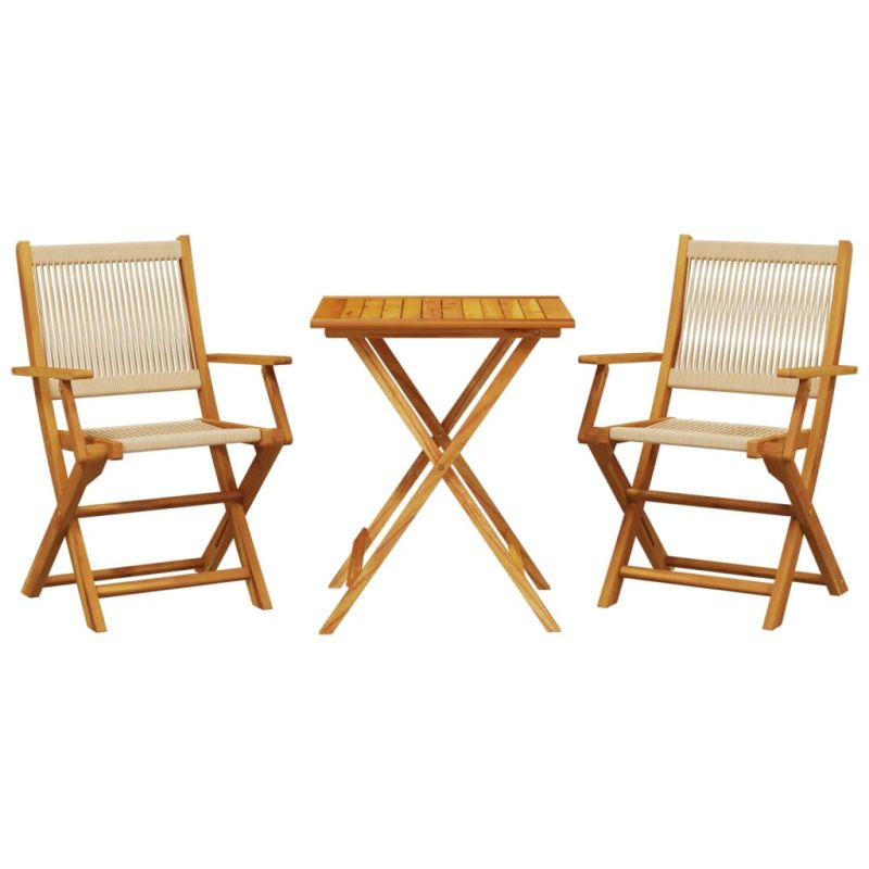 Насладете се на чаша кафе или поговорете със семейството и приятелите си в градината, задния двор или на балкона с този комплект за бистро! Здраво и стабилно: Масивното акациево дърво е известно със своята здравина и издръжливост. Неговите разнообразни цветове и уникални зърнести шарки му придават привлекателен вид. С добра стабилност и устойчивост на атмосферни влияния, тя е идеална за изработка на вътрешни и външни мебели.Практичен дизайн: Практичният и плосък дървен подлакътник ви позволява да отпуснете ръцете си върху него, докато се наслаждавате на времето си на открито.Здрав плот: Външната маса предлага отлична опора за вашите напитки, закуски, кошници с плодове и любимите ви декорации.Сгъваем дизайн: Трапезните маси и столове могат лесно да се сгънат, когато не се използват, за лесно съхранение и транспортиране. Добре е да се знае:За да сте сигурни, че вашите външни мебели ще останат красиви, ви препоръчваме да ги защитите с водоустойчиво покривало. Максимално 110 кг на седалка.