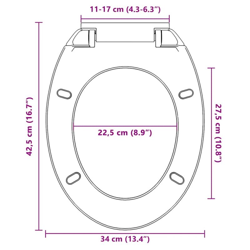 Тази висококачествена тоалетна седалка, която е подходяща за всички стандартни тоалетни чинии, ще бъде идеална за частни жилища, ресторанти, магазини и хотели. Изработена от здрав полипропилен, седалката е изключително стабилна и издръжлива. Тя има функцията на плавно спускане, което означава, че се затваря бавно и тихо. Отличава се с механизъм за бързо освобождаване, така че седалката може да се сваля лесно при необходимост. Тя се почиства лесно и се инсталира бързо с панти за горен монтаж и крепежни части, устойчиви на корозия.