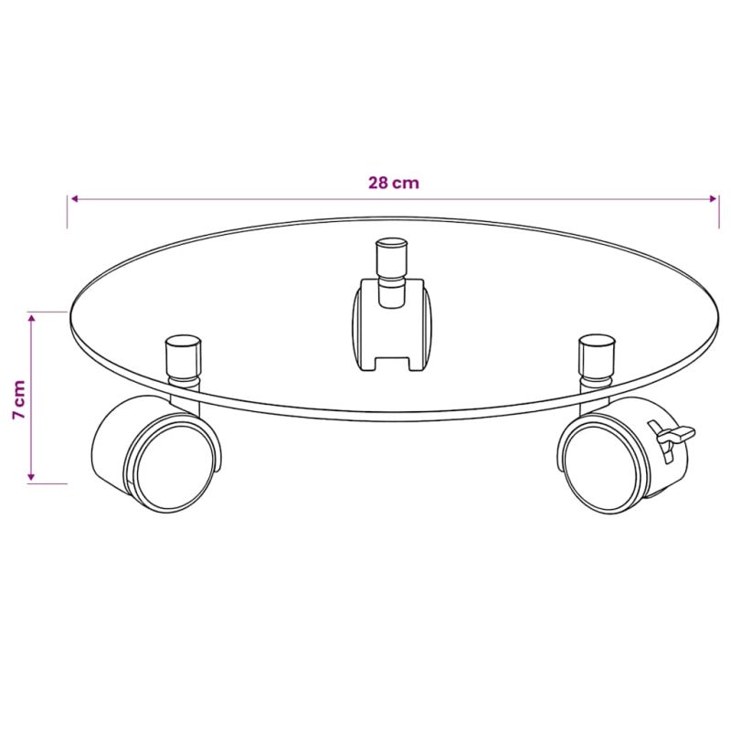 Местете лесно вашите саксийни растения или цветя с нашите удобни цветарници! Със своя компактен и непреходен дизайн, тези подвижни цветарници ще бъдат чудесно допълнение към всяко жилищно пространство. Горната част на тези стойки за саксии е изработена от закалено стъкло, което е по-здраво и безопасно от обикновеното стъкло. Благодарение на въртящите се на 360° колелца стойките за растенията могат да се местят без усилие. Едно от колелцата е снабдено със спирачка, така че цветарниците да могат да бъдат стабилизирани при нужда. Рафтовете за растения се сглобяват лесно. Доставката включва 2 стойки за саксии.