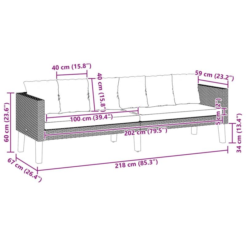 Създайте привлекателна и релаксираща зона, за която винаги сте мечтали с този 3-местен диван. Можете да се насладите на релаксиращ слънчев следобед или лятна вечер със семейството и приятелите си на този градински диван! Този градински диван е изработен от издръжлив PE ратан със стоманена конструкция с прахово покритие, която го прави стабилен, здрав и устойчив на атмосферни влияния. Диванът е лесен за почистване, износоустойчив и подходящ за ежедневна употреба при всякакви метеорологични условия благодарение на PE ратана. Дебело подплатените възглавници и изключително дълбоките модерни седалки ви предоставят комфортна почивка. Освен това можете да местите този градински диван около дома си с голяма лекота заради лекия и модулен дизайн. Забележка: Препоръчваме покриването на фотьойла по време на дъжд, сняг и скреж.