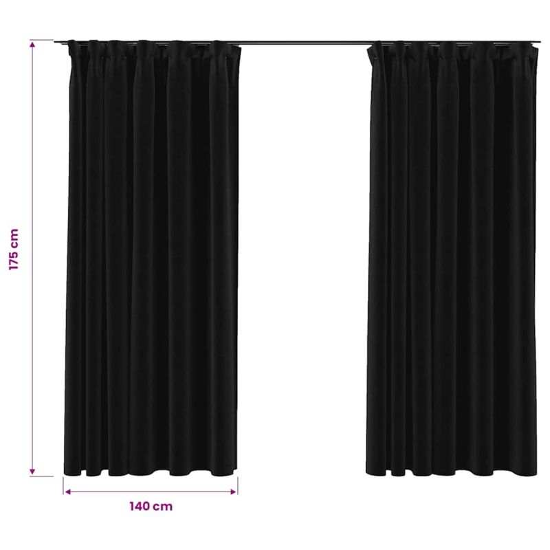 Затъмняващи завеси с куки имитация лен 2 бр антрацит 140x175 см