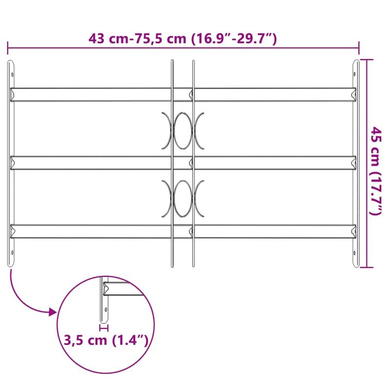 Тази охранителна решетка е произведена по висок стандарт и ще спомогне да се повиши сигурността на вашия дом или офис. Изработена от солидна поцинкована стомана, тази охранителна решетка с 3 напречни пръта е здрава и издръжлива и ще защити ефективно вашия имот от кражба с взлом. С декоративните си елементи решетката за прозорец добавя също докосване на стил към дома ви. Тази охранителна решетка може да се инсталира хоризонтално с регулирането на ширината от 500-650 мм, за да пасне към размерите на различни прозорци. Нашата прозоречна решетка е не само мярка за сигурност, но чрез фината си изработка добавя и стилен елемент към дома ви. Сглобяването е лесно. Доставката включва също и монтажни аксесоари.